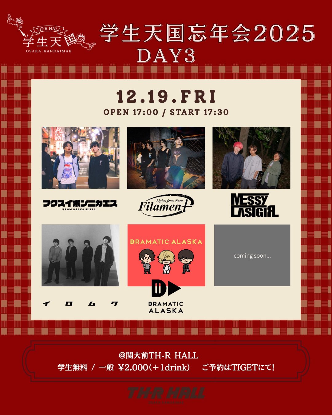 act. フクスイボンニカエス フィラメント Messy last girl イロムク ドラマチックアラスカ 🎫学生無料 / 一般 ¥2,000 (+1D) TIGETにて受付中 ▶︎ https://t.co/DoLmA7AFmc PrevNext