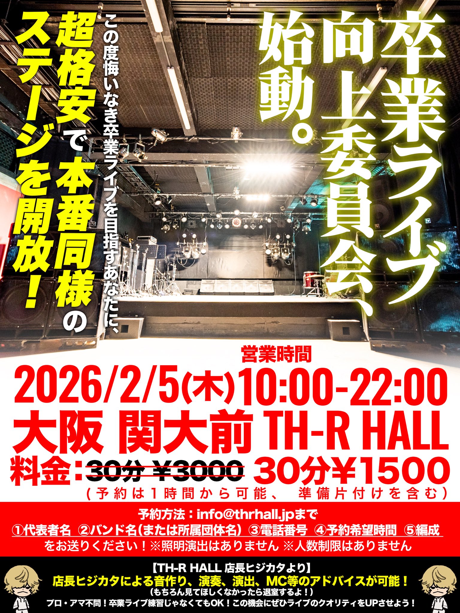 ・卒業ライブの練習じゃなくてもOK! ・練習じゃなくてバンド仲間と思い出作りでもOK!(入場はメンバーに限ります) ・コピバン、オリジナル問いません!